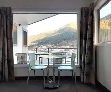 Lakeview Studio, with a King bed, and a single bed. A 37"TV, sitting area, ensuite bathroom. There is tea/coffee making facilities, fridge and a microwave. Unit is double-glazed for your comfort.Free 2GB WIFI Daily. Amazing views over the lake, the Gondola and surrounding mountains. Shared Outdoor balcony with seating. Rates are based on 1-2 people sharing. Maximum Occupancy 3 people